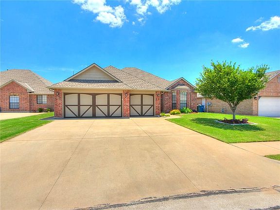 Wonderfully maintained in the desirable Thomas Trails Addition! 4 bed(or 3 with study), 2 bath, open concept with NEW carpet throughout & ready for new owners! Home boasts attractive tile, arched doorways, stainless steel appliances, ceiling fan & walk-in closet in every bedroom, & great storage! Killer kitchen with beautifully painted cabinetry, granite counter tops, tile back splash, and opens to the breakfast area and living room with gorgeous fireplace. The Master bedroom has trayed ceiling with 2 large walk-in closets, jetted tub, & separate vanities. Overlook the fenced backyard from the patio--the perfect space to relax or entertain! Spacious three car garage. Centrally located - get to Mitch Park, Downtown Edmond, East Edmond, I35, or Broadway Ext in minutes! This home will not last long! Set up a showing before it's too late!