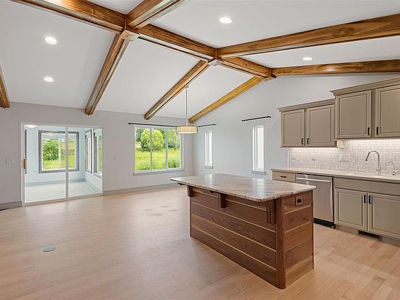 Welcome to this spectacular main level living, end unit, walkout townhouse! NEW furnace and A/C in 2022! This bright and beautifully updated, well cared for home features vaulted ceilings with incredible custom woodwork including quarter-sawn Poplar beams, refinished Red Oak hardwood floors, solid Walnut fireplace facade with Hackberry mantle, Walnut kitchen island base, handrailing and MORE! Open concept kitchen with brushed Marble island top, Corian kitchen countertops, Marble basket weave backsplash, SS appliances and steel cabinet pull outs. Relax and take in the amazing prairie views from your 3 seasons room & featuring a large lower level family room & bonus room with 220 electric, utility sink, and extra storage space. All in a great location near Brown Deer Golf Course! This home is a MUST SEE! Don't miss your opportunity and call today!