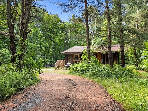 Unique Property with 2 cabins on nearly 10 acres near Keuka Lake! Cabins are private from one another as they sit at opposite ends of the wooded property and each have their own private driveway and utilities. This stunning property offers the perfect blend of tranquility, income potential, and ample space. Nestled in serene woods, you'll find a charming A-frame cabin (1008 sq ft) which is a successful Airbnb boasting "Guest Favorite" status! Includes 2 BR, open concept living area, small deck and a firepit for gathering with friends and family! Sitting deep in the woods at the other end of the property is a Studio Cabin (600 sq ft) which has an incredible wall of windows for natural light during the day and stargazing at night. Use this for your own personal use while renting the A-Frame cabin or make it a second AirBnB and generate even more income! Lots of possibilities! Located just a stone's throw from the vibrant Keuka Lake, offering wineries, restaurants, and plenty of outdoor activities. All furnishings included. Don't miss this chance to own a piece of Finger Lakes paradise! Schedule a showing today! Delayed negotiations until June 26 at Noon. Sq ft per owner