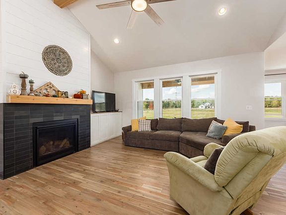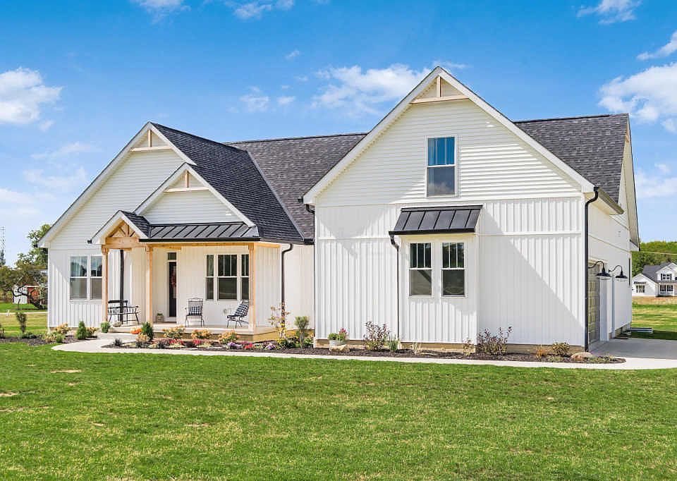 A true original modern farmhouse greets w/ professional landscape and welcoming front porch. Gorgeous and functional ranch plan with 4 BR, 3 baths on 5 acres. Great room w/ gas fireplace, custom built-ins, window wall and cathedral ceiling open to gourmet kitchen. Quartz countertops, gas range, farmhouse sink, and additional wall oven/microwave combo in Butler's Pantry or work from home in the Pocket Office! Bright & airy owner's suite, master bath w/ soaking tub and custom master closet. Kids' wing w/ shared bath/double sink and private shower. Large mudroom room off oversized garage features custom lockers/drop zone, W/D, and pet wash. 2nd story bonus room for teenage getaway or in-law suite. Relax on the rear covered porch or expansive concrete patio and enjoy endless sunsets.