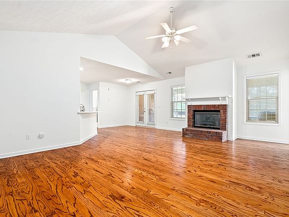 This charming one-story brick residence offers timeless elegance and modern comfort, nestled in a serene setting in one of Auburn's most desirable neighborhoods - Moores Mill. Open and functional layout with stunning red oak hardwood floors throughout the main living areas. Grand formal dining room featuring a soaring 14-foot tray ceiling, crown molding, and a picturesque window that floods the space with natural light. Spacious and inviting great room with vaulted ceiling, cozy gas fireplace, and seamless flow into the breakfast nook and kitchen. Chef’s kitchen boasts brand-new quartz countertops, stainless steel appliances, abundant cabinetry, and durable tile flooring. Split floor plan. Spacious primary suite with tray ceiling and tranquil backyard views. Luxurious en suite bath with double vanity, jetted soaking tub, separate shower, and walk-in closet. Second bedroom with its own private full bath—ideal for guests or multigenerational living. Bedrooms 3 and 4 share a third full bathroom. Dedicated laundry room with built-in cabinets and utility sink. Screened-in back porch—your personal retreat. Low-maintenance yard with mature landscaping. Generously sized closets throughout. Freshly painted interior - move-in-ready. Two-car garage with workbench and shelving for hobbies and storage. Gutters and new Trane HVAC system installed in 2023. Enjoy access to the neighborhood pool and the welcoming atmosphere of Moores Mill—where convenience meets charm. Just minutes from Auburn University, Tiger Town shopping, great restaurants, schools and churches. Don’t miss this rare gem and the opportunity to live your best life in the heart of Auburn.