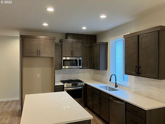 - Features: Dishwasher, Gas Appliances, Island, Microwave, Free Standing Range, Quartz