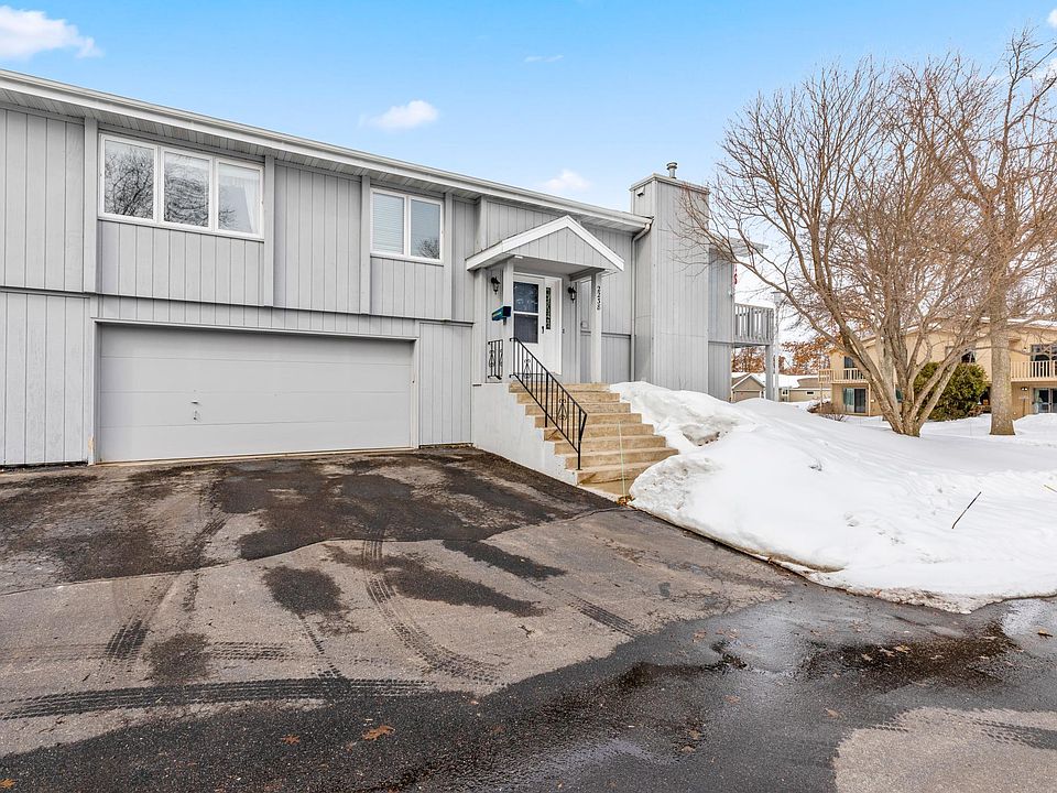 Are you tired of taking care of your own snow and lawn care? Need an attached garage to keep you out of the cold? This may be just the home for you. This split-entry end unit townhome has 2 bedrooms and 2 and 1/2 bathrooms, and a chair lift for each flight of stairs. You'll be pleasantly surprised to find a generously sized walk-in closet in the primary bedroom as well as a private bath. There is ample space to entertain, as there is a dining room, breakfast dining area, and attached deck on the upper level. The lower level features a nice open space to relax with a gas fireplace providing a cozy ambiance. The lower level has a convenient patio door that leads out to green space. Come and see if this is your next home!