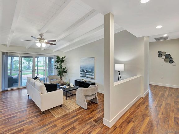 Located in one of San Diego’s most sought-after neighborhoods at the top of Bay Park, this beautifully remodeled home offers breathtaking ocean and bay views. From 2017 through 2025, the home has undergone comprehensive renovations with permits, blending modern comfort with high-quality craftsmanship. Enjoy an open-concept living space with a completely reimagined kitchen featuring custom cabinetry, center island, and upgraded appliances. The front bathroom has been luxuriously remodeled, and a master bath suite was constructed - both boasting a walk-in shower, soaking tub, new mirrors, sinks, cabinets and floors. Double-pane windows, added insulation, and a new HVAC system ensure year-round comfort, while a brand-new roof with a 50-year warranty offers peace of mind. Other highlights include updated plumbing to the street, a new electrical panel, and a full security system. Curb appeal abounds with new stucco and stacked stone exterior, artificial turf, an extended front porch with custom steps and pilasters, and a front yard brought to grade with new landscaping. A skylight brightens the kitchen, and the garage has been drywalled, painted, and finished with an epoxy floor—plus interior access was added for convenience. Additional recent improvements include new bedroom carpets, fresh interior paint, modern window coverings, and a new backyard fence. This turnkey property combines thoughtful upgrades with timeless views—truly a rare find in Bay Park.
