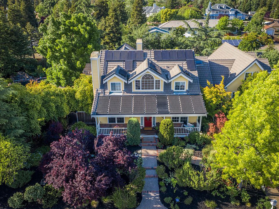 Country Farmhouse custom Home on Premium Estate Lot! This Spectacular Custom Home is a Hidden Treasure and Truly a Must See! Enjoy Reading, Sipping a Cup of Tea or a Glass Wine in the Swing on Your Own Covered Front Porch. Amazing Private Grounds with Beautiful Landscaped Areas, Mature Trees, Including 10 Productive Fruit Trees, Vegetable Planter Box Areas (25 Vegetables/Herbs), Lawn Area, Built-In Pool, Spa,Waterfall, Outdoor Kitchen BBQ Area with Cozy Fireplace. This Home has Character and Welcomes You in with a Gracious Entryway, and Adjacent Formal Living and Dining Rooms. High Ceilings, Wainscoting, and Window Seats. Open Kitchen is Adjacent to Family Room Which Has Built-In Cabinets, Gas Fireplace, and French Doors to Rear Grounds. First Floor Master Suite with Adjacent Office. 3 Bedrooms & 2 Bathrooms Upstairs. Plus, Separate Guest Suite w/t Full Bathroom Above the Garage. Can Serve as Bonus Room. Smart Home Technology and Solar for Pool & House,Much More.(Too Much to List Here)