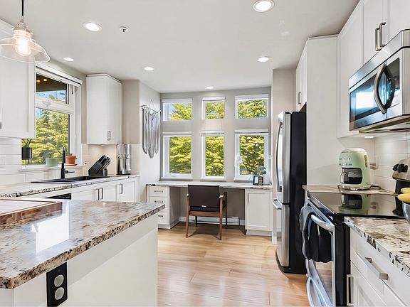 Stunning greenbelt viewsLight and brightOversized windowsStainless steel appliancesInduction rangeBreakfast barSpacious primary suite