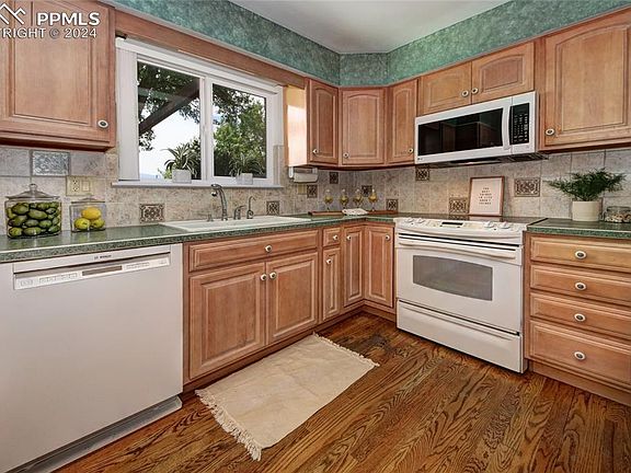 This former Parades of Homes model, nestled near Palmer Park Open Space in Colorado Springs, awaits your creative touch. Discover abundant potential and ample space in this 5-bedroom, 3-bath residence boasting picturesque landscaping and breathtaking views of Pike's Peak. Situated on a corner lot, this home features a rare amenity—an inground HEATED pool. Inside, original oak hardwood flooring adds charm, complemented by an oversized two-car garage. Don't miss out on the endless possibilities this property has to offer