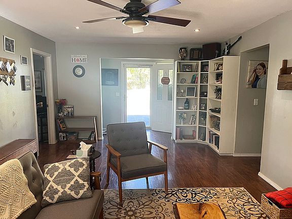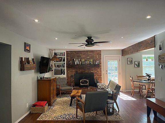 This is a 3 bedroom, 2 bath, and 2 living areas recently updated with granite counter tops and custom cabinets. Stainless steel appliances and new fixture’s. The living room has a cozy fireplace with wood burning insert and built in shelves. There is a big family room great for entertaining or movie nights, has French doors that open up and provide lots of light. Also has extra closets and a built in lockers for extra storage. A rural property tucked away on a corner lot with lots of trees and a dry creek on 5 acres in the lovely quiet neighborhood of Woodland Meadows. Lots of wildlife and great for hunting. Storm shelter close to house. New roof and HVAC in 2017, new windows in 2020.