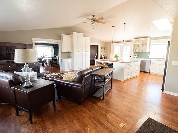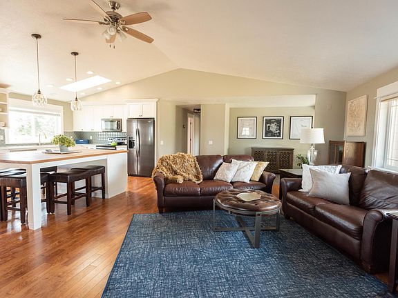 Dream location provides the best of both worlds! This beautifully updated home on nearly 10 acres lets you enjoy the space and quiet of country living while also being close to schools, restaurants and all the amenities Bend offers.The many flexible spaces and large rooms in this light and bright reverse living floor plan means there is space for everyone, with plenty of options for distance learning, remote working, a home gym, kids, pets and relaxation. Finishes throughout the home are modern and top-quality, including Italian tile and 3/4'' oak hardwood throughout, a four-zone HVAC systems with LED air purification and a modern kitchen with new appliances, quartz countertops, large butcher block island and an abundance of cabinet space. Underground sprinklers in yard and fields makes this a very low-maintenance property. The flat pastures, cross-fencing and large barn are great for those wanting horses or livestock.