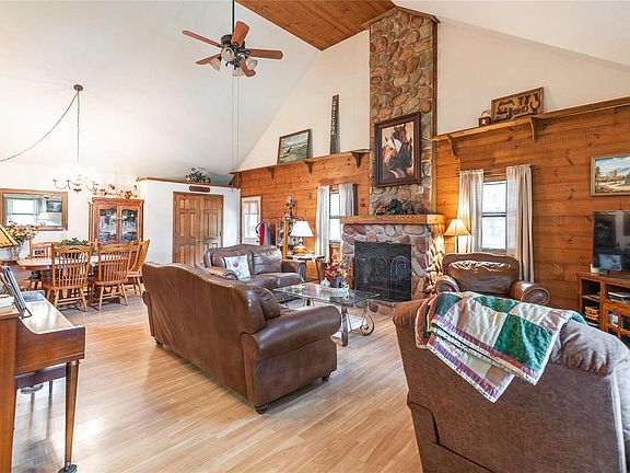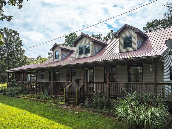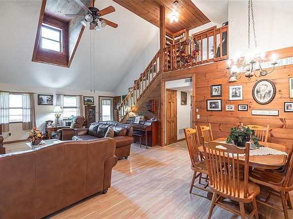 Stunning earth contact 3 bedroom, 2 bathroom home on approximately 17.13 acres! This beautiful property offers incredible country views, abundant wildlife, a 4 stall barn with electricity, detached garage with lean-to, and a pond! Step inside from the inviting wrap-around porch and prepare to be impressed. The semi-open concept living room showcases a gorgeous stone 2-story, gas-burning fireplace. The dining area is accented with knotty pine walls. This charming kitchen boasts a center island with seating. The main level has 2 bedrooms and a full guest bath. Upstairs is a loft area that overlooks the living room, ideal for a home office space, that leads into your spacious primary retreat, offering a sitting area, french doors leading out to your private back deck, a cozy window seat, a sizable closet, and a full ensuite bathroom! Just a short drive to Fort Leonard Wood, Ozarks Riverways, and National Forest, so what are you waiting for? Schedule your private showing soon!