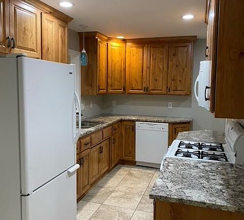 This 5 bedroom rambler features upper level with 3 bedrooms (wood floors) and full bathroom, lower level has 2 bedroom (carpet), a den (carpet), and 3/4 bathroom. Remodeled kitchen with granite countertops and Knotty Alder cabinets, refinished original hardwoods floors, updated bathrooms, huge 4 season porch, washer and dryer included, patio, fenced in backyard. No smoking and no pets.