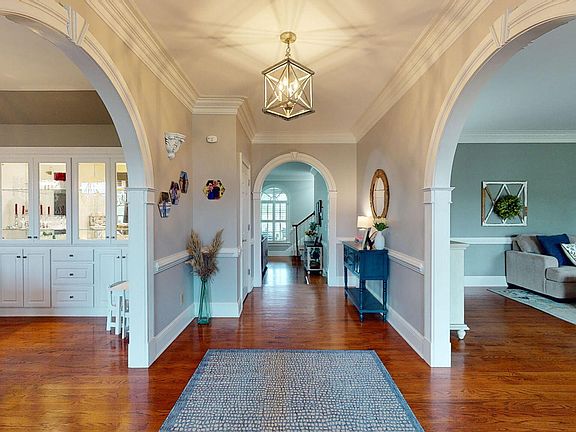Beautiful 5,000+ sq-ft five-bedroom home with full brick exterior. Gourmet kitchen with large granite island and plenty of space for entertaining, custom cabinetry, and walk-in pantry. Centralized den with built-ins and granite-framed gas fireplace. Gleaming hardwoods, ornate crown molding, and bright windows with custom plantation shutters. The master bedroom is privately situated and features a walk in closet and sitting area. The master bath showcases a jetted Jacuzzi tub, tile flooring, and a walk-in shower. Two additional half baths on main level, formal living room, dining room, and study. Recently added outdoor cooking area on the covered porch, main HVAC units recently replaced. Large laundry/mudroom located just off the garage entry. Finished bonus space over the three-car garage. Two walk-in storage spaces, and additional attic space.