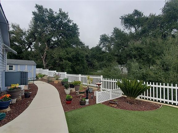 This home boasts an open floorplan with large quartz covered island separating kitchen from living room. Quartz countertops throughout, glass tile backsplash and stainless steel appliances. Dining area with lots of windows creating a light and bright interior. Crown Molding enhances the high ceilings and continues throughout the home. Wood plank vinyl flooring. Spacious master with with ensuite featuring a beautiful tiled step in shower. Lovely fenced backyard that overlooks the natural seasonal creek and common area maintained by the park management. Low maintenance artificial turf, solid covered patio, garden shed and fruit trees create a relaxing and inviting outdoor space. Oak Tree Ranch is a beautiful, all age community with community pool, bbq area, car washing station, dog park, picnic area, play ground, stage for special events, lovely remodeled club house with library and full kitchen. Manicured lawns and beautiful park like setting welcome you home! There are areas for visitor parking for family and friends. Come and enjoy the lifestyle you've been looking for!