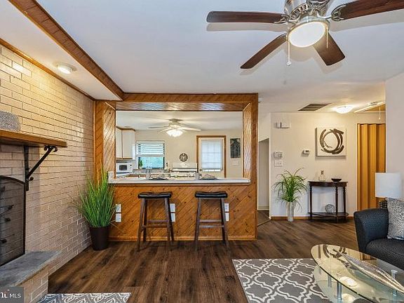 Charming cottage styled rancher with inviting front porch is a must see! Enter into the lovely living room with full wall brick gas log fireplace, ceiling fan and luxury vinyl plank flooring that flows throughout the home. Wonderful eat-in kitchen with breakfast bar, ceiling fan, new gas range and an abundance of cabinetry. Conveniently located laundry room with stackable washer dryer plus built-in cabinet and shelving. Two bedrooms down the hall, both with ceiling fans plus a linen closet and full bath. Pull down attic with lots of space for storage. Fantastic oversized back deck and yard are great areas for entertaining and your summer BBQ! Large storage shed with electric remains but conveyed as-is. Gas heat, central air. A wonderful home and opportunity! Easy to show!