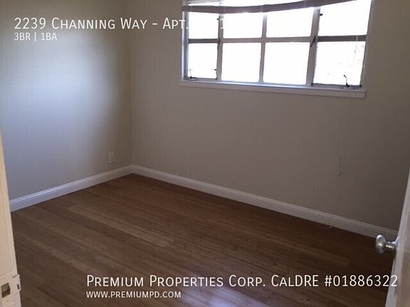 This is a Must-Three-Bedroom Apartment...walk out your door, around the corner & there is the Campus! This Community Features The Following: Two Short Blocks to UC Berkeley Campus Walk To Downtown Berkeley Restaurants, BART and Shopping Top Floor Apartment. Remodeled Units with Hardwood Floors and Upgraded Kitchen Water and Garbage Included Indoor Cat Allowed with Fee Shared Laundry in the Building One Year Membership to Premium Concierge Services Professionally Managed for Premium Service Applicants must qualify for a zero security deposit. Fees and Restrictions may apply. See Leasing Agent for Details. Property Description The Channing Stroll Apartments is a three-story building comprised of 14 apartments with a mix of one, two and three-bedroom apartments. Many of the units have had complete ground up remodels. This building is situated north and south, with the apartments facing away from the street, minimizing the street noise. Unit windows face both east and west which allows plenty of natural light into the apartments. The complex also has an on-site laundry facility and covered parking available for a monthly fee. Units have wood flooring and are equipped with gas heating for cozy living in the Fall and Winter. Large windows maximize natural light and help warm the unit during the day. The living areas and bedrooms offer ample space with over-sized closets and some units have remodeled kitchens with chic granite counter tops and new appliances. Neighborhood Information The building features a fabulous location super close to Telegraph Avenue, the gateway to UC Berkeley and the center of U.C Berkeley campus culture. The area is perfect for those who want to live where the action is. There's easy access to everyday necessities with CVS Pharmacy, Whole Foods and the UC Berkeley Campus within walking distance. Just around the corner you'll run into Telegraph's trendy stores and street vendors. Just a little bit farther and you're right in the middle of the Elmwood/College shopping district. If you're looking to get out of town for a day trip, Downtown Berkeley BART is just a bike ride away. Channing Stroll Apartments 2239 Channing Way Berkeley, CA 94704 PROPERTY DESCRIPTION Welcome to Channing Stroll Apartments, a distinguished three-story building offering a collection of 14 meticulously remodeled apartments. Our mix of one, two, and three-bedroom homes are thoughtfully designed to provide a tranquil living experience, positioned to minimize street noise while maximizing the infusion of natural light with east and west-facing windows. Each unit features elegant wood flooring, gas heating for cozy autumn and winter nights, and large windows that not only brighten your living space but also warm it throughout the day. The spacious living areas and bedrooms boast over-sized closets, with select units showcasing remodeled kitchens equipped with sleek granite countertops and modern appliances. THE PREMIUM DIFFERENCE Channing Stroll Apartments, our commitment to premium service sets us apart. Our professional management team is dedicated to ensuring your satisfaction, offering a high level of personalized service, swift maintenance solutions, and meticulous upkeep of the property. Our units enjoy the added benefit of an On-Site Resident Manager, providing an unparalleled living experience. Choose Channing Stroll Apartments for more than just a place to livechoose a premium lifestyle. PREMIUM CONCIERGE SERVICES Get ready to live the hassle-free life at your new apartment, which comes with an awesome membership to Premium Concierge Services for your initial lease term and guess what, it's totally FREE! Here's what you get: Utility Setup & Billing Renter's Insurance Handyman Services Cleaning Services Package Handling Package Return Trash Valet Service Concierge Recommendations And More To Come! Just a heads up some restrictions apply, so check with our agent for all the details. Oh, and the photos you see might be from a similar unit, but trust us, they're all great! NEIGHBORHOOD INFORMATION Channing Stroll Apartments boasts an unbeatable location near Telegraph Avenue, the pulsating heart of UC Berkeley and its rich campus culture. Live where the action is, with easy access to essential amenities such as CVS Pharmacy, Whole Foods, and the UC Berkeley Campusall within walking distance. Explore the eclectic mix of trendy stores and street vendors along Telegraph, or venture a bit further to the charming Elmwood/College shopping district. For those adventure-filled days, Downtown Berkeley BART is just a bike ride away, connecting you to the wider Bay Area and beyond. At Channing Stroll Apartments, you're not just finding a home; you're discovering a community that celebrates the dynamic Berkeley lifestyle. Welcome to your serene haven, where convenience meets comfort in the heart of the action.