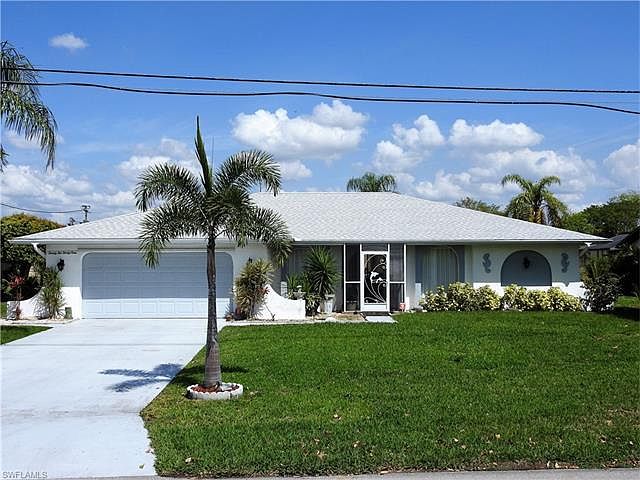 This is one of the best buys for a Direct Sailboat Access Pool Homes in all of Cape Coral and its less than 5 minutes to the river via the Everest Canal. Access made easy with a wrap around dock that offers a 10K lift suitable for a 30' boat and 2 Davits for a smaller craft or jet skis. The location is hard to beat with quick access to Del Prado, Veterans Pkwy and the Mid Point Bridge. Everest Pkwy is a quiet street with great walking/bike lanes the whole length that lead to right to Horton Park. The home is a very well maintained Florida style home that has so many upgrades including a new roof, air conditioning, tile floors, and dock decking -- just to name a few. This home features a large master bedroom with en-suite and 2 additional bedrooms that share a guest bath. There is a semi-formal dining area separated from the remodeled kitchen and a large living space. The oversized lanai is accessible from the master bedroom, one guest room the pool bath and through the triple slider in the main living area allowing for wide open living during the cooler months. This home is a must see and offers features only available in homes with much higher price!