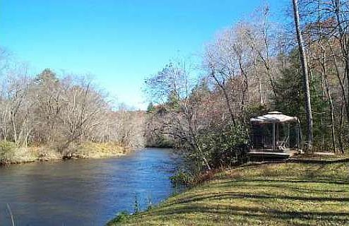 Fly Fishing Retreat on the banks of the Toccoa River with 140 feet of River Frontage! Enjoy the amenities Riverwalk on the Toccoa has to offer right out your front door! Beautiful Pavillion with Outdoor Fireplace, Outdoor Kitchen and Grills, private deck on the water's edge, and so much more! Level yard for kids to run and play. Boat Launch Ramp for easy access in and out of the river. A fisherman's dream cabin! Tongue and Groove throughout and open floor plan for easy living. You can't buy a lot on the river for this price! Not in flood plain!
