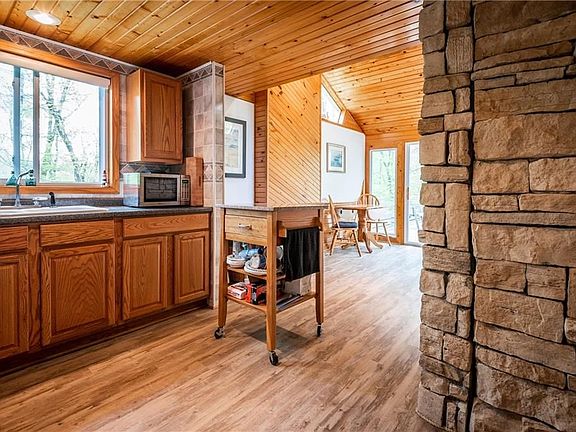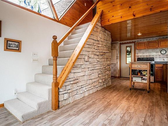 Overlooking rushing waters of a rippling waterfall features this full time or retreat at Leesville Lake. Rests on 17 acres of woods, wildlife, privacy and seclusion. This spacious contemporary LAKE HOME is high lighted by 4 bedrooms + 2 full baths. Upper loft (overlooking dining room)leads to a large master bedroom. Kitchen/dining room boasts a cozy fireplace. Step thru sliding glass doors and enter onto a large entertaining deck overlooking your wooded wonderland. Sunken large living room is warm and inviting. Escape to the lower level finished walk-out and enjoy the family room w/wood burner, full bath and 2 additional bedrooms. Plenty of room in your Buckeye storage barn w/loft to house all your seasonal items. All of this is located in a lake community with lake access with dock, fishing and hunting available. Life begins right here in your own piece of heaven. All mineral rights owned by Sellers will transfer with sale. Only a short distance to the lake and beach.