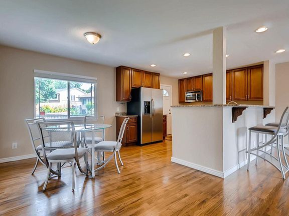 Located on a quiet, convenient street in Green Mountain, this home has been updated throughout and has an open, easy living floor plan. The main floor has 3 bedrooms and 2 updated bathrooms. The kitchen has slab granite countertops with a large granite breakfast bar, stainless appliances, and 42 inch upper cabinets. Soft close too. The rich, hardwood floors extend through the kitchen and great room and down the hallway to the bedrooms. The lower level has a another bedroom, a 3rd bathroom, a family room, and a and freshly tiled laundry room. The garage is oversized with plenty of room for 2 cars, a workshop, and ample storage. The backyard is fenced with a deck - perfect for entertaining. There is a large storage shed and a sprinkler system for easy maintenance. There are newer windows, and all of the concrete and exterior steps are new. This home is move-in ready and quick possession is OK, too.