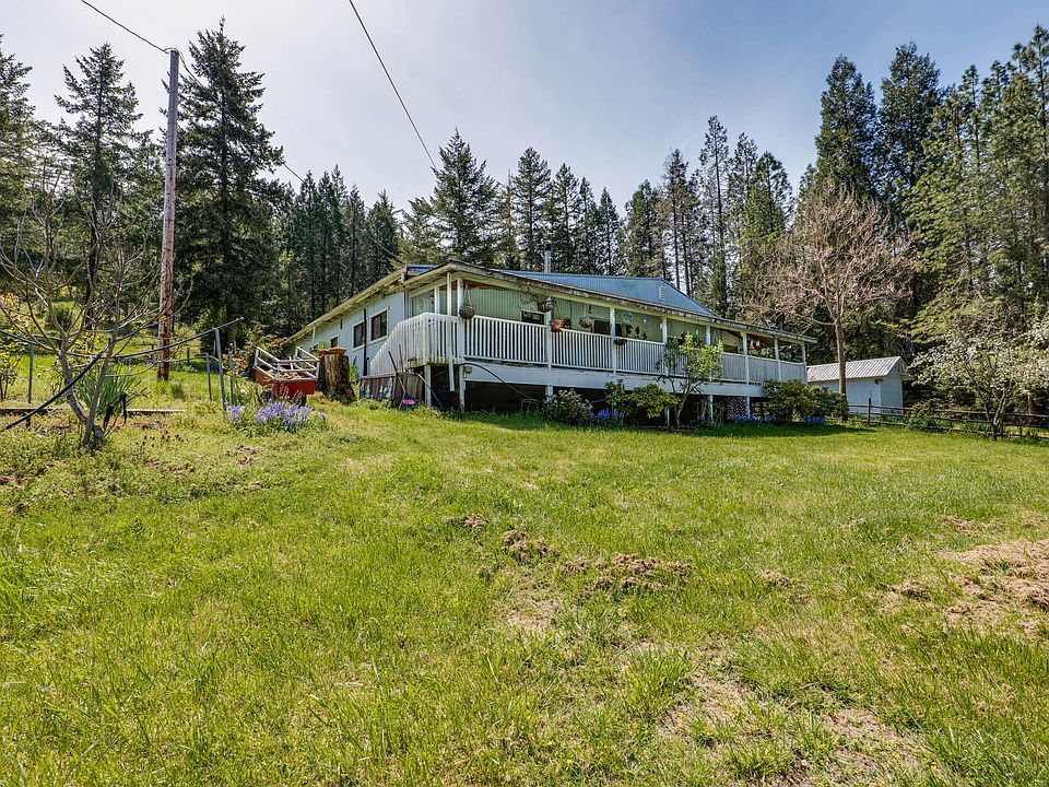 Imagine unplugging from the chaos of everyday life and embracing the tranquility of country living. This beautiful, 2836 sq ft, 4-bedroom (with a non-conforming 4th) and 3-bath home is all on one level, situated on over 6 acres of scenic land. The spacious primary suite features a luxurious bathroom complete with a jetted soaking tub, perfect for unwinding after a long day. The kitchen has been tastefully updated with modern finishes, including a stylish tile backsplash, making it a joy to cook and entertain. Step outside to enjoy the expansive wrap-around covered deck, ideal for enjoying breathtaking sunsets or sipping your morning coffee. The property offers a pond, an orchard, raised garden beds for your green thumb, a small barn, a workshop, and plenty of covered parking, giving you the self-sufficiency you've been dreaming of.