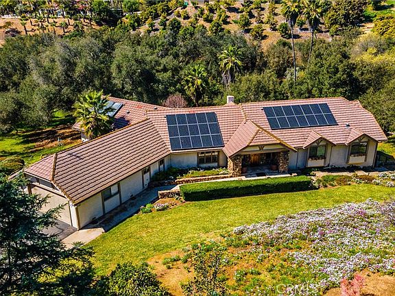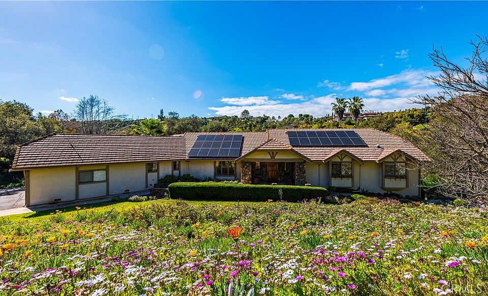 Introducing a custom-built haven nestled on 2.78 acres of lush landscape in the serene enclave of Fallbrook in North County, San Diego. This single story ranch residence boasts wood accents throughout, and a HUGE deck off of the rear to soak up the panoramic views of the surrounding countryside. An Entertainer's delight with spacious living, dining, kitchen and family rooms. Enjoy your small grove of avocado, orange, lemon and lime trees. With its private oasis setting, this property offers the ultimate retreat for those seeking tranquility and sophistication. Country living, but close to all the amenities Fallbrook has to offer. Your opportunity to make this your own won't last long, so act NOW!
