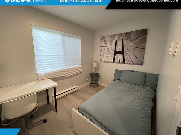 KITISLANO BEACH CONDO FOR RENT 2 BEDROOMS FULLY FURNISHED & NEWLY RENOVATED! 2 bedrooms, 1 bath, $3200 per month Available Dec 1st to April 30, 2025 WOW, you can't beat this location! One block from Vancouver's popular #KITSILANOBEACH along Yew and 1st Ave! Get your daily walks on the beach promenade. Enjoy your evening with friends just steps from pubs and restaurants. This isn't just a home it's a lifestyle! On major bus routes to UBC, #VancouverGeneralHospital, and #DowntownVancouver. Fully furnished 2 Bedrooms plus 1 Bath. Has everything you need, just move in! Good for a Vacation, Executive, Temporary or Long Term rental INCLUDES: 2 Bedrooms, plus futon, can sleep up to 4 One parking stall in secure garage Bike storage Kitchen utensils and dishware, kitchen appliances (dishwasher, microwave, coffee maker, kettle, toaster, fridge, stove, oven) Bedding, linens, towels, iron Television Large closet space Patio Washer/dryer combo unit in suite Large laundry facilities in building RENT: $3200 per month Utilities not included No pets, No smoking, No drugs Short or long term rental: 3 months minimum, 6-12 month lease preferred Fully Furnished Utilities included except Internet/Cable