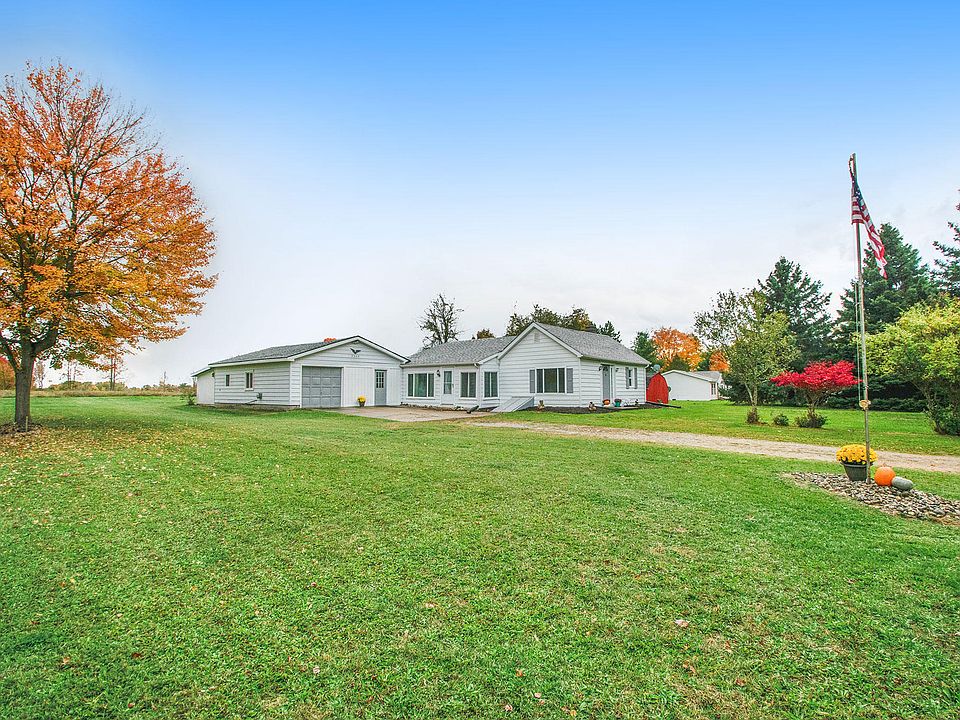2 bedroom, 1 bath remodeled home with the potential of extra bedrooms in garage area! Completely remodeled with a newer roof, furnace, new drywall, flooring, paint, etc.! Large heated garage area for workshop, man cave, or bedrooms. The lot has extra storage buildings, grapes, pear, and apple trees. All on 2.75 acres! Close to M46 for easy access. This house is easy to show! Sale fell through due to buyer FHA financing. Home was recently FHA appraised at $130,000.