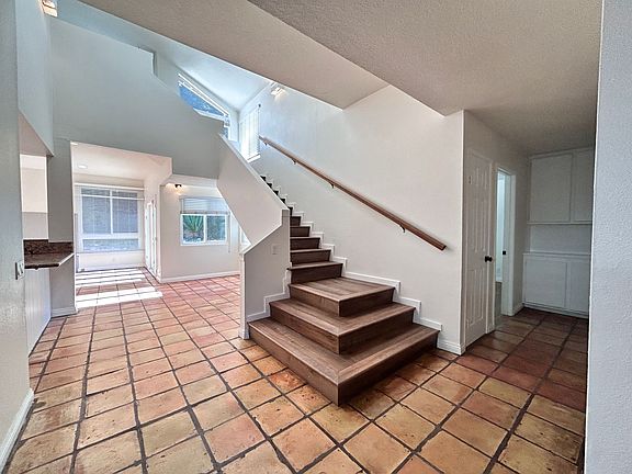 Charming 2-story home in the heart of Lake Forest! Welcome to 22392 Rippling Brook, a 4-bedroom/3 bath home with a private hillside view. Beautifully stamped concrete adorns the front entry. Front door entry leads to soaring high ceilings, staircase, and Spanish paver tile floors. There are 3 bedrooms, and 2 full bathrooms located downstairs on the main level. Secondary bedrooms are spacious. The 4th bedroom, located upstairs, is an open concept loft style room which boasts high vaulted ceilings, large windows, dual sinks, oversized tub, dual standing shower, fireplace and a walk-in closet. The 4th bedroom doesn't have a privacy door, it is accessible from the staircase. Formal dining room and family room with inviting fireplaces, French doors access to the spacious backyard, with plenty of room to entertain. Refinished kitchen features freshly painted cabinets, granite countertops, and new modern stainless-steel appliances. Attached 2-car garage with separate laundry room, and easy/low maintenance yard. Located close to Pebble Creek Park, jogging/biking trails, shopping/ retail and schools. Renter is responsible for all utilities including water, sewer, gas, electric, trash. 1 year lease available $50 application fee applies per each adult applicant. Renters must carry Renters insurance $100k minimum coverage. No cats allowed; Max 2 small dogs available.