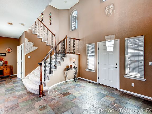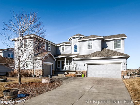 Ideally situated executive home on almost ½ acre in Canterberry with breathtaking mountain and city views. Spacious 5 Bedroom/5Bath + office and extra loft/game room offers space for everyone. This Joyce Homes semi-custom home features upgrades throughout. Warm and inviting 2-story catwalk foyer with vaulted ceiling, arched doorways and dual staircases welcomes you to open floorplan living with formal living and dining spaces. A private office and full bath are also on the main level. Built for entertaining, the kitchen is wisely positioned open to the gorgeous living room with abundance of windows, gas fireplace and magnificent views. Chefs Kitchen features center island, gas cooktop, stainless steel appliances, double oven, built-in fridge, walk-in pantry, two sinks, hot water on demand, eat-in area and additional desk space. Utilize the Butler’s pantry between kitchen and dining room which offers a wine fridge, serving space and additional storage closet. Private Master suite includes sitting area and ensuite 5 pc bath, oversized walk-in closet with organizers, double sinks, soaking tub, separate water closet and makeup prep area. Three additional bedrooms, two full baths as well as a loft/game room complete the upstairs. Separate laundry and mud rooms make organization a breeze. Laundry room features cabinetry and deep sink. Mud room has built-in cabinets and ledge and cubby storage. By the time you enter the newly finished walk-out basement with full bath, bedroom, large recreation/living area and 2 large storage rooms you will be amazed by all this home has to offer. Step in the backyard to enjoy the hot tub, fire pit area or children’s play area with swingset. 3 garage spaces - 2 bay stall is oversized with hot water. 1 bay stall has built-in loft area for even more storage. Home Extras: Abundance of storage/closets, South facing driveway for easy snow melt, oversized mud room with storage cubbies, quaint front porch, fire pit area in backyard, custom playset and concrete landscape curbing. Don’t miss this opportunity to own on beautiful home on large lot in desirable Legend High School feeder area. Newer: Roof, exterior paint/trim, composite deck, dishwasher, microwave, garage disposal, fire pit area & wrought iron stair railings. HOA includes: Community Pool, Clubhouse, Tennis Courts, Trash/Recycling.