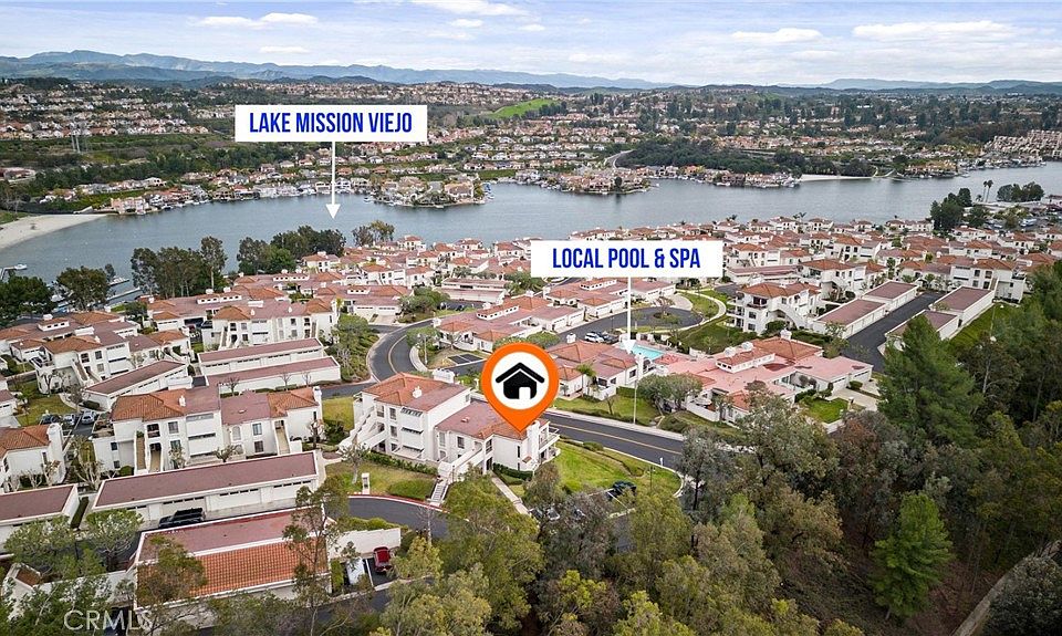 Located in the highly desirable guard gated community of Mallorca & enjoying a gorgeous view of the Mission Viejo Lake, this 2 bedroom 2 bathroom, upper level home, is truly special. Vaulted ceilings & plenty of natural light shine throughout the open floor plan. The home has a large living room centered around the fireplace & has doors leading out to the large wrap around patio where you can enjoy spectacular views of the lake, mountains, sunsets & city lights. The upgraded kitchen features white cabinets, a black granite countertop with sparkles & stainless steel appliances for the perfect contrast. The large master bedroom enjoys gorgeous views of the lake as well. Enjoy the community's numerous offerings such as private beach, boat dock, pools & spas. Enjoy resort living at its finest!!