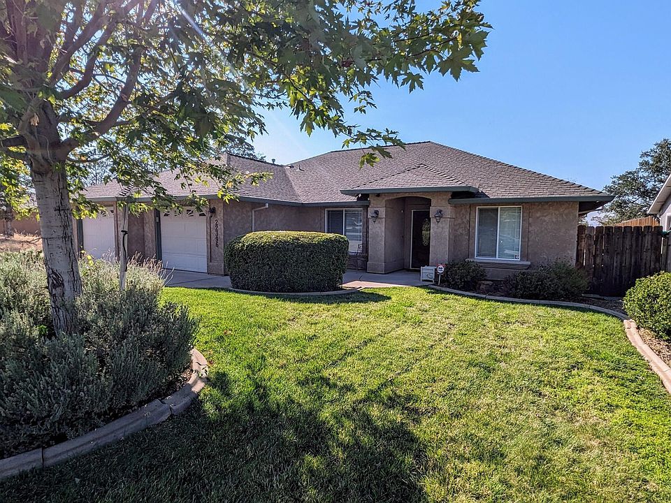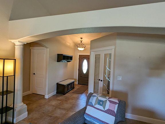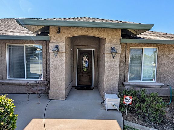 This is a lovely home with an open, flowing floorplan. 3 bedrooms PLUS office/den with double glass doors. The Rich teaberry stained maple cabinets in the kitchen show off the stainless appliances and tile counters and floors. A sliding glass door in the master suite takes you to the exciting hot tub under the covered rear patio. There is a great BBQ area and a large, level backyard with greenbelt views. Owned solar is included as well as a generator. This is a very energy efficient home.