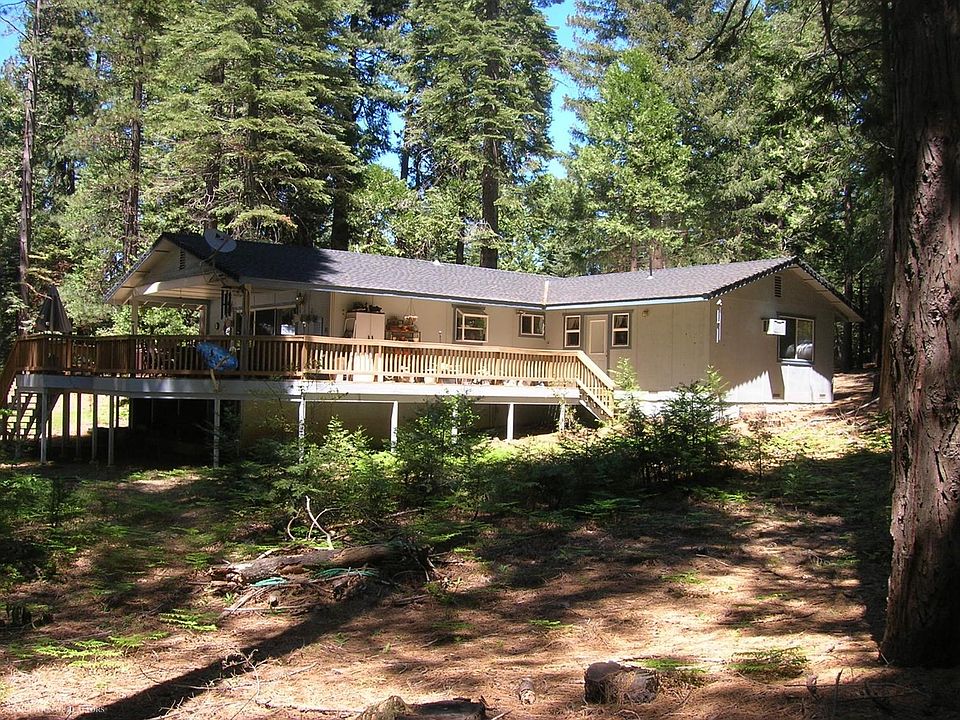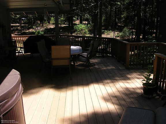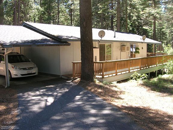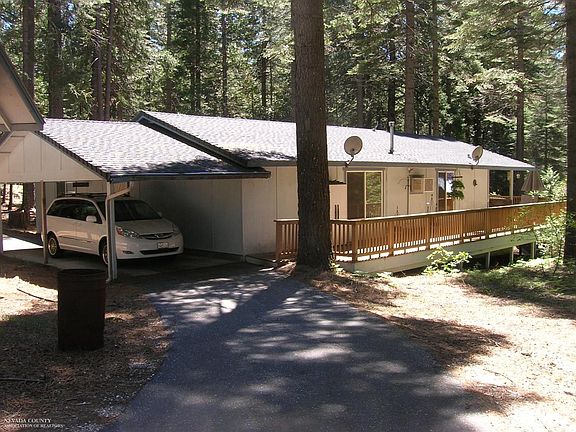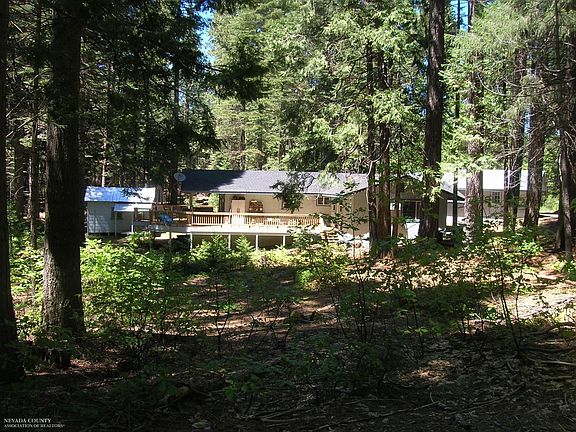 level 5+ acre lot back off highway with Great starter home, summer cabin, plenty of room for expansion, use your imagination.enjoy year around SPA on back deck. Big 25x50 metal barn with high doors drive through for rv ,horses. paved circular driveway to highway. up out of valley heat down below excessive snow yet close to,snow and water skiing ,high mtn lakes. Minutes to Nevada city, what more could you ask for