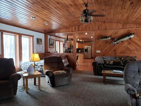 No second look needed here, you'll be sold at first glance. Essence of the North Woods snuggled in 64 acres of wooded privacy. Attractive, cedar sided quality home featuring stone fireplace, pine paneled ceilings and wainscoating, oak floors, 6 panel doors, oak cabinets, first floor laundry and a charming 20 x 8 screen porch surrounding you with nature. Huge 28 x 22 living room leads you to the dining area and large 18 x 12 kitchen for fun with family and friends. This spacious, comfortable and handsome home can be your ideal family home or your ideal recreational headquarters. Acreage has food plot, tree stand and the Chequamegan Nicolet National Forest is nearby offering more land to enjoy. Clam lake to the West, Iron county trails to the East and Copper Falls State Park to the North. Large garage, 1008 sq. ft. Insulated, heated(wood stove). Carport area, wood shed, 20x8 Dog run w/a heated 8x8 kennel. Additional 8x8 storage shed. Call today!!
