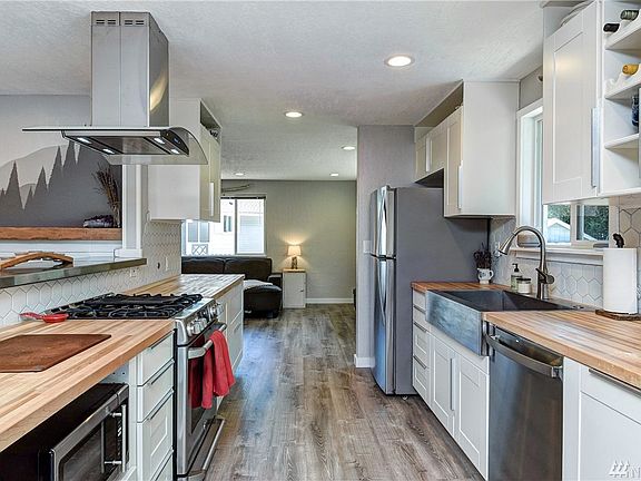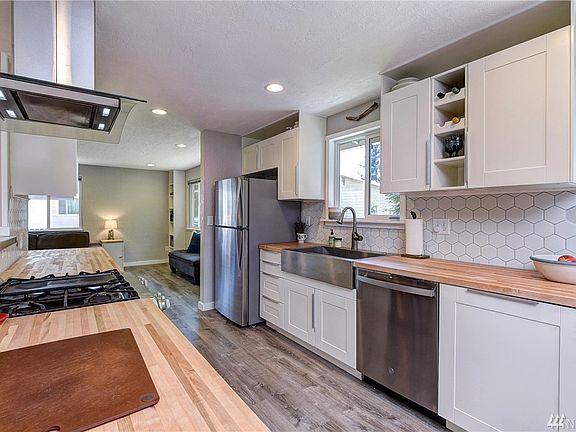 Captivating fully updated rambler in the coveted community of Martha Lake. Kitchen features butcher block countertops, stainless steel bar top, custom soft-close cabinets and brand new stainless steel appliances. The chef in you will love the versatile work space, gas range/stove, and deep farmhouse sink. Brand new flooring and paint throughout. Recently installed gas fireplace. All the bathrooms are updated with custom tile work and elegant finishes. The backyard boasts green grassy space great for entertaining, bon-fire pit, and a nicely sized deck. Mature maple and fruit trees abound with clean easily maintained landscaping. 2-car garage with epoxy floor and plenty of space. This turn-key beauty has it all!