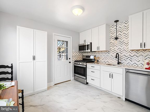 Live in the heart of Broomall and enjoy walking to stores, eateries, and the library. Conveniently located near Sproul Rd., Rt 476, West Chester Pike, and just a little over a 10-mile ride into Center City Philadelphia. This charming Cape Cod has been a labor of love and restored by the designer who grew up in this home. It features a flexible floor plan with two upstairs bedrooms and two main-floor bedrooms. One of the bedrooms is suitable to serve as an office, den, playroom, or formal dining room. All of the floors have been refinished, and the walls, trim, and doors are freshly painted with new light fixtures throughout. The kitchen is the heart of the home with beautiful cabinetry, a pantry closet, modern stone countertops, and new stainless appliances. A bathroom with handsome cabinetry, an elegant tile floor, and upgraded fixtures complete the home. There is a full clean basement with laundry to use for storage that could be finished. The rear yard is private and partially fenced with a detached 1-car garage.