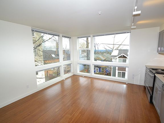 Newer Studio apartment with open floor plan. Tall ceilings with super large windows facing east offering spectacular sunrises and views of the Cascade Mountains and sunrises. Hardwood floors, great kitchen and washer/dryer in unit. 700+ credit score. Net Income greater than 2 time rent Seattle First in Time Criteria in slides No Smoking No Pets
