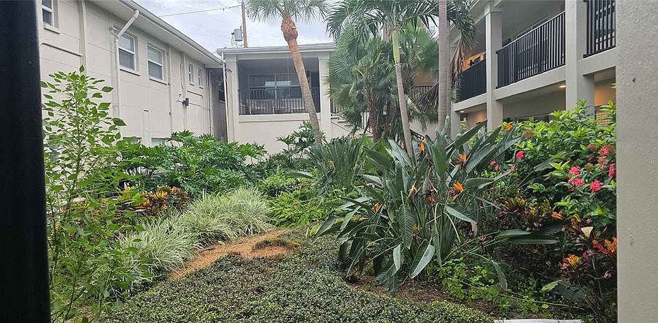 Live in the heart of vibrant Downtown St. Petersburg, where entertainment, dining, and culture are just steps away. Enjoy movie theaters, live performances, museums, waterfront parks, and an endless array of restaurants all nearby. This desirable second-floor 1-bedroom, 1-bath unit is surrounded by lush landscaping and features a modern kitchen equipped with a full suite of stainless-steel appliances, including a refrigerator with icemaker, electric stove, built-in microwave, and full-sized dishwasher. Solid wood cabinets and granite countertops add both style and functionality. The open floor plan offers tile flooring in the main living area and warm wood flooring in the bedroom. A spacious walk-in closet provides ample storage, while ceiling fans in both the living room and bedroom enhance comfort. The bathroom has been upgraded with stylish fixtures and tile. The entire unit is framed by newer central AC and heat for year-round climate control. On-site laundry facilities add everyday convenience, making this home as practical as it is charming. Rex Rentals & Realty, Inc. is not the management company for this property.