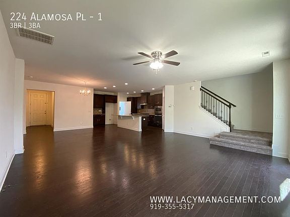 This 2285 square foot townhome home has 3 bedrooms and 2.5 bathrooms. This home is located at 224 Alamosa Pl #1, Cary, NC 27519.