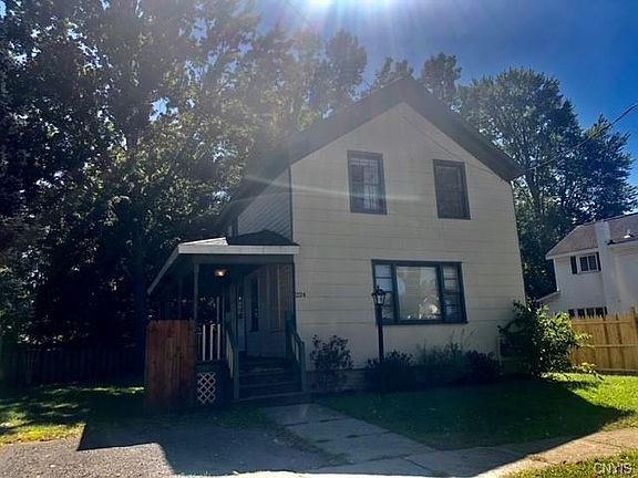 A home where you can rock on the front porch and overlook your fenced in yard! Spacious foyer with tile floor, living room with accent wall and beautiful laminate flooring, dining room with bow window, the kitchen has a lot of cabinetry, 2 or 3 bedrooms - there is a room off of the master. Two full baths. A honey for the money.