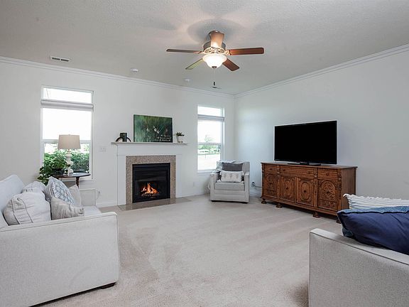 Step into effortless elegance in this custom home, where high-quality materials meet maintenance-free living in a tranquil neighborhood. Easy-care flower beds signal your special retreat. Inside, a thoughtfully crafted split floor plan offers privacy with 3 spacious bedrooms and 2 luxurious baths. A versatile den near the entrance is perfect for a home office, library, or guest room. The heart of the home is a breathtaking open-concept space, blending a gourmet kitchen (quartz counters, stainless steel appliances, pantry), dining area, and inviting great room with picturesque views. A separate laundry room adds convenience. Retreat to the master suite, a true haven with a custom closet and an en-suite bath featuring raised counters, a walk-in shower, and heated floors. Extend your living space to the all-season screened porch, overlooking a peaceful pond. The yard stays lush with front/back irrigation. Even storage is easy with a garage attic elevator. This move-in ready masterpiece invites you to a life of comfort and serenity. Schedule your showing today!