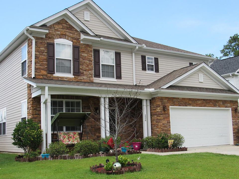 Paradise off the patio! Lovely in-ground salt water pool and lake view beyond, makes this back yard a haven from the fast pace of life. A full front porch invites you in to the large, formal living/dining room combination with beautiful wood floors that flow into the kitchen and adjoining family room. The high end cabinets, solid surface countertops, huge pantry and views of the pool encourage you to sit at the table a little longer. The covered back patio, matching storage shed, garden area and lake beyond, make this back yard a paradise! Upstairs is more living space with large loft, deep closets and four spacious bedrooms. Double doors open to the large master with dual sinks, and a closet that is 12x8. This home has it all and enjoys the neighborhood walking trails and pavilion. There is gas or electric available, motion sensor lights around the front and back of the home and the cute shed has power. This home is an open floor plan with lots of areas to spread out and enjoy, tons of storage and paradise off the patio. Hurry and make an appointment today. Summerville is the number one place people are choosing to live.