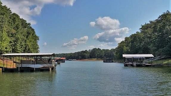 Waterfront lot with mobile home and slip dock in place. RV parking with hook-up also on property. Level lot with deep water in convenient Lake Hartwell location.