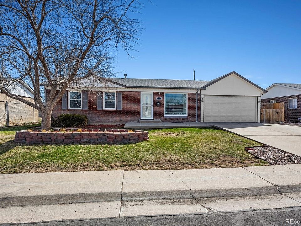 Welcome to this beautiful ranch-style home nestled in a prime location in Brighton, Colorado. Conveniently situated within walking distance to downtown Brighton, the family-friendly Colorado Park offering basketball courts, tennis courts, and a playground, as well as the scenic Colorado Front Range Trail, this home embodies the essence of comfortable living with easy access to amenities and outdoor recreation. As you approach, you'll be greeted by a large, mature front yard tree providing shade and charm. Step inside to discover a bright and sunny living room adorned with hardwood floors, creating a warm and inviting atmosphere for relaxation or entertaining guests. The spacious eat-in kitchen is a culinary haven, boasting ample warm wood cabinetry with crown molding, solid surface countertops, and direct access to the backyard, perfect for outdoor dining or gatherings. The main level features three bedrooms, offering comfortable accommodations for the whole family, while two additional bedrooms can be found in the finished basement, providing flexibility and extra space for guests or hobbies. The garage, with its tandem design and rear garage door opening to the backyard, offers convenience and functionality, while two permanent sheds provide additional storage solutions. A hideaway for trash and recycling cans ensures a neat and organized outdoor space.Step outside to enjoy the covered patio and admire the vibrant rose bushes, while the crab apple blossoms and lilac bush delight the senses in the spring months, creating a picturesque setting for outdoor enjoyment. Recent updates including a new AC, furnace, Smart thermostat, basement windows, gas line, garage drywall, utility room in the basement, and river rock landscaping ensure that this home is move-in ready, allowing you to settle in and start making memories right away. Welcome home!
