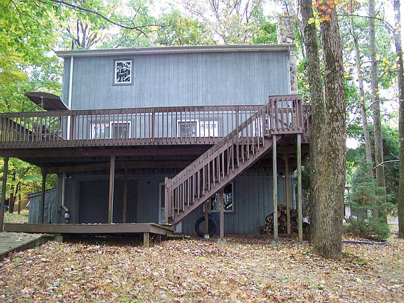 Spacious contemporary home, 4/5 bedrooms,4 baths, xlarge deck, shed,walk-out lower level,aux. coal stove, built-ins, wooded lot. Double car garage in front and single car garage in back.