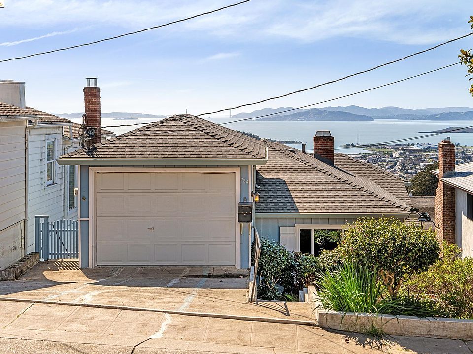 Panoramic San Francisco Bay views await at this 3BR, 2BA traditional mid-century Kensington home ready for your vision and muscle. The Golden Gate Bridge greets you upon arrival into the living room, with original hardwood floors and fireplace. Adjacent dining room, also with sweeping views, connects seamlessly with the kitchen. Down the hallway, two generous bedrooms share a hall bathroom with mid-century vibes. Main level also includes: laundry room, pantry, 1-car garage and built-in storage. Lower level connected by stairs with bedroom, bathroom and private entrance, has potential as a primary suite, au pair unit or guest quarters. Slider leads to expansive deck, with pathway down to the terraced garden. The property is moments away from award-winning Kensington Hilltop Elementary, Kensington Park for tennis or basketball & trails into Tilden Park and Blake Gardens. Located in Upper Kensington, enjoy easy access to shops/cafes, Solano Avenue, UC Berkeley, Colusa Circle & downtown San Francisco by AC Transit, BART or freeway.