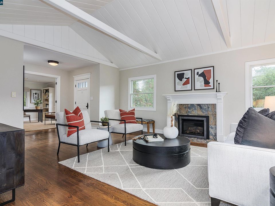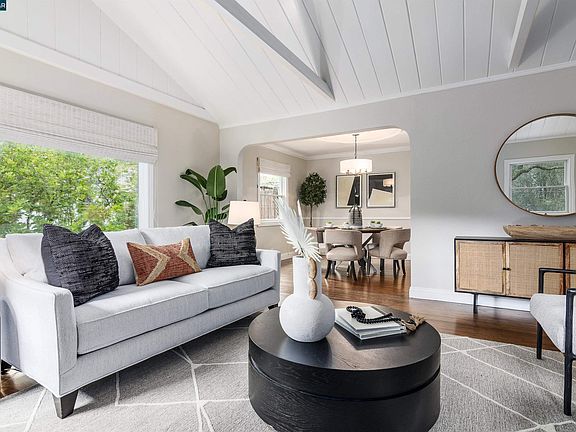 This Orinda Country Club updated classic home with large backyard, built in 1941, sits on a .53-acre lot just steps to Lake Cascade just right for morning & evening strolls around the Lake and just a few minutes walk to Orinda Country Club. A birdwatcher’s paradise—owls, egrets, geese, hawks, pelicans, ducks & more! This 3758 sf, 5 bed, 3 ba, home is designed for entertaining. Updated chef's kitchen w/adjoining spacious family room opens to patios & sunny, terraced vegetable gardens w/ fruit trees, berries, grapes & wood burning fireplaces, living room w/ new slate-faced custom-designed gas fireplace, dining room, luxurious primary suite w/ heated floors in spa bath, (opens to garden), two additional bedrooms, one currently used as an office (entry could easily be reoriented to hallway) & full bath on main floor. The lower level boasts two bedrooms, den/2nd family room, laundry room & full bath. Distinctive features include vaulted ceilings, wood beams, hardwood floors, skylights & sliders inviting you to the lovingly maintained fully fenced backyard. The two car garage completes this very special property!!