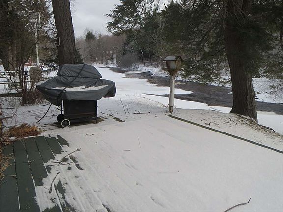 Cute little cottage is the first words that will come to mind when you see this property for the first time. However the more you explore it the more you will fall under its charm. The views of the river are breath taking, and the fact that you can sit on your deck and listen to the water as it flows past you are all bonuses. Throw a line in the river and try your luck at catching dinner. This piece of heaven is adjacent to state land which affords you all kinds of opportunities, such as snowmobiling, four wheeling,(one of the few trail systems that still allow access to four wheelers) hiking, snowshoeing, hunting just to mention a few. You could sit out by the river and roast marshmallows and hot dogs to warm you back up upon your return from your adventures, or in the summer after taking a dip in the river to cool off. Launch your canoe in your own back yard and explore this neat little river. In the cottage you will find that the owners have made great use of the space while at the same time taking advantage of the world outside. Sliding glass doors afford views of the river and so many windows make this house bright and airy. There is a loft which adds more space to the floor plan enabling you to choose what you want to do with it, maybe an extra sleeping room, office/study or a place to sit and gaze out the oversized windows. Everything stays in the home, dishes, furniture, television, the only thing you need to bring is your clothes and food, (unless you can catch dinner) . There is a shed that will stay as well as all the contents in it. There is a 400.00 dollar homeowners fee that they pay yearly to maintain water system and roads and driveway (plowing)