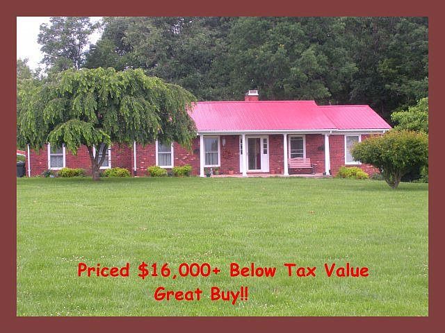 Beautiful Mountain Views on front porch of this newly painted well maintained brick ranch with full basement, 2 wood-burning stone fireplaces. Fruit trees and blue berry bushes, grapevine. Large usable level land, big garden,carport/2 storage buildings. Has had updates, windows, french doors, cabinet,central air, wood laminate, 2 single attached garages on both levels, wood stove in basement.Range,dishwasher,washer/dryer all convey,refrigerator does not convey. Priced $16,150 under tax value. HURRY its a great deal!!