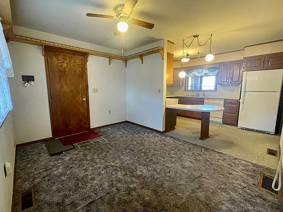 This adorable 3 bedroom/1.5 bath home is perfect for anyone looking for one level living. Conveniently located in town within walking distance to restaurants, the grocery store, banks, post office and more. It features an open, eat-in kitchen and dining area with easy access to the attached garage as well as the welcoming enclosed sun porch that looks out over the back yard. Two storage utility buildings are also included with the property. Laundry access is conveniently located in the full bathroom. If you're looking for one level living, a great starter home or to downsize a bit, this lovely home may be perfect for you! At this price, act fast! (This property is being sold as an estate, so there is limited knowledge in the seller's disclosure and the property will be sold as-is)