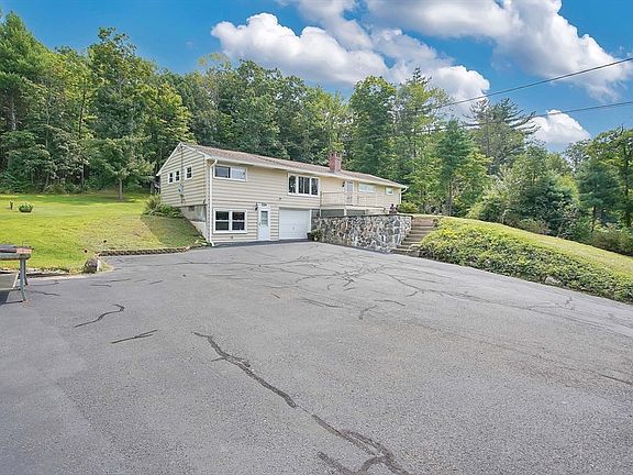 Welcome to this well-maintained ranch in Southwick, MA, where comfort meets convenience. This inviting home features 4 bedrooms and 2 bathrooms, with a finished basement area providing additional versatile space for your needs. The property includes a large detached garage with potential for expansion. Above the garage, there’s space for a studio, complete with a porch and patio—ideal for creative projects or a quiet retreat. Set back from the road on over 4 acres, this home provides both privacy and tranquility. Inside, you’ll find elegant wood floors and updated windows, enhancing the home's charm and efficiency. Located just under 1.5 miles from the public beach at Lake Congamond, this ranch offers easy access to the lake and nearby conveniences, making it the perfect blend of peaceful living and accessibility.